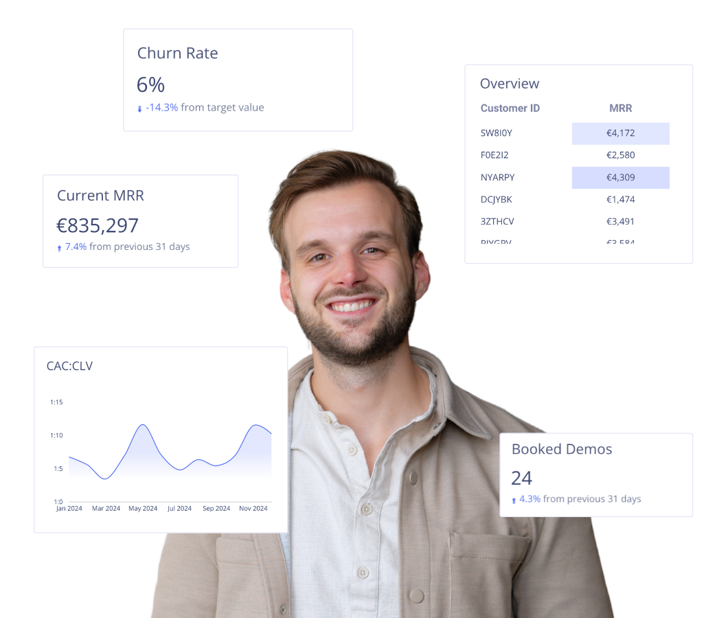 What once felt simple and under control, now runs on many moving parts — marketing channels are disconnected from sales, LTV:CAC ratio is a rough guess, and your churn data is a month old.