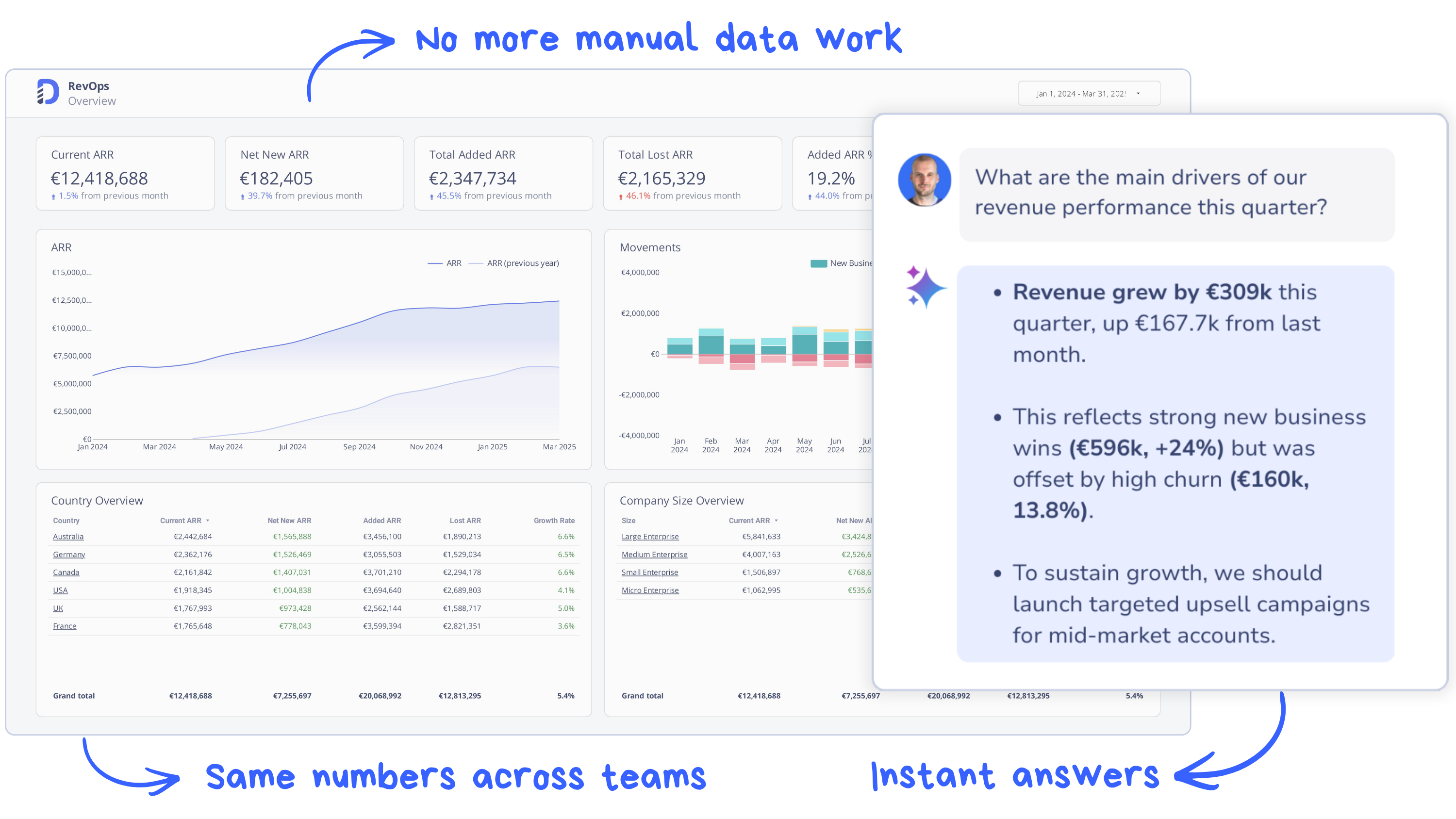 Sales, Marketing, and CS show up to meetings with the exact same numbers—ending the debates over whose spreadsheet is right.